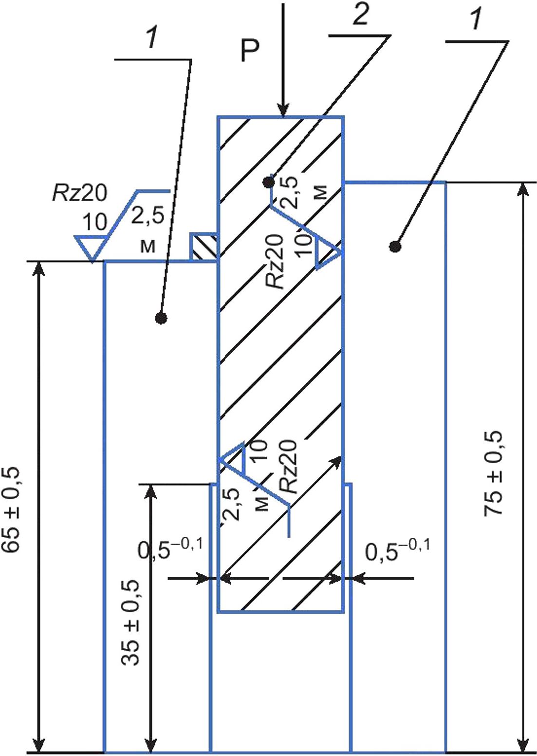 Рисунок Б.1 — Размеры, форма и шероховатость поверхностей образцов для испытаний на срез
