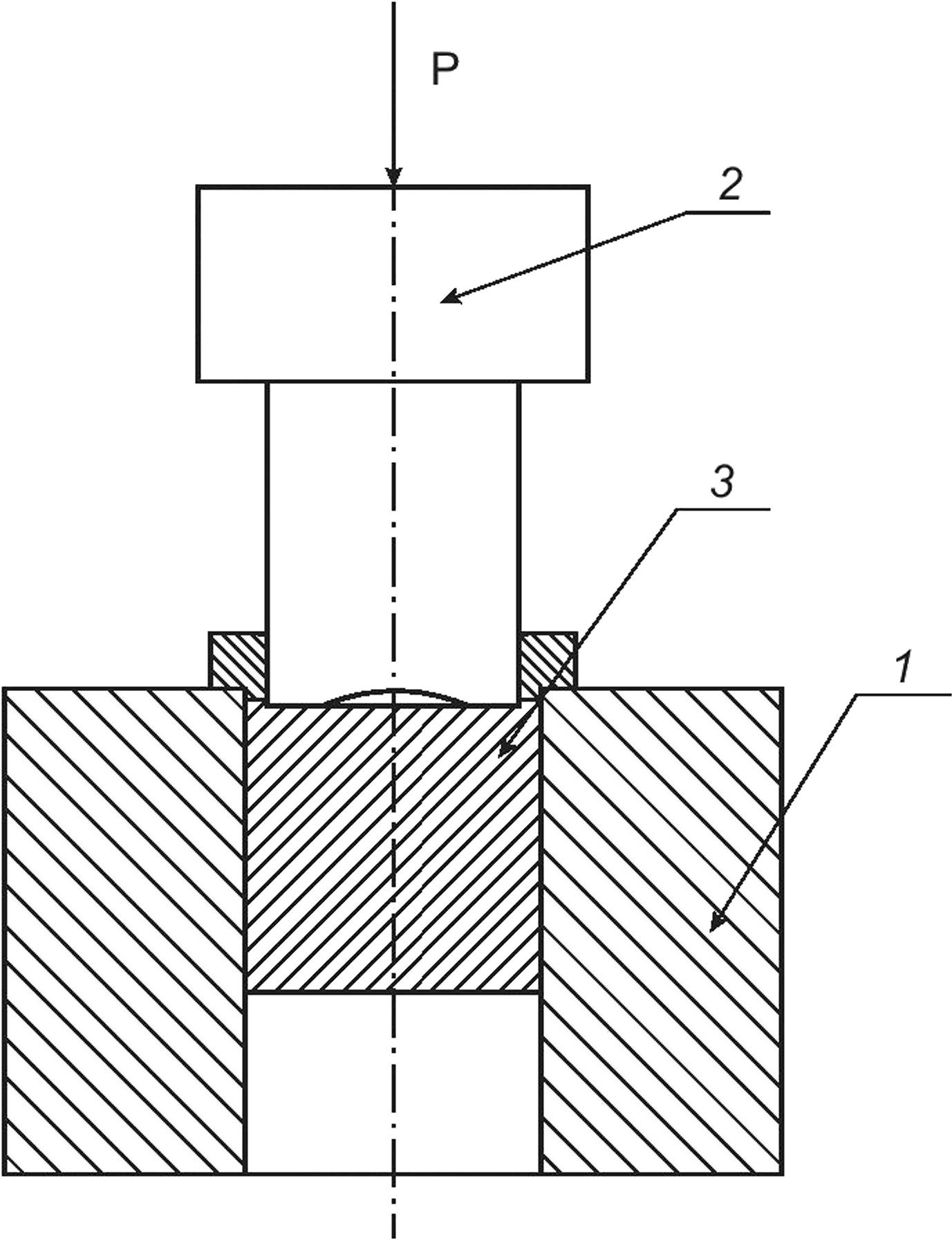 1 — матрица; 2 — пуансон; 3 — испытуемый образец