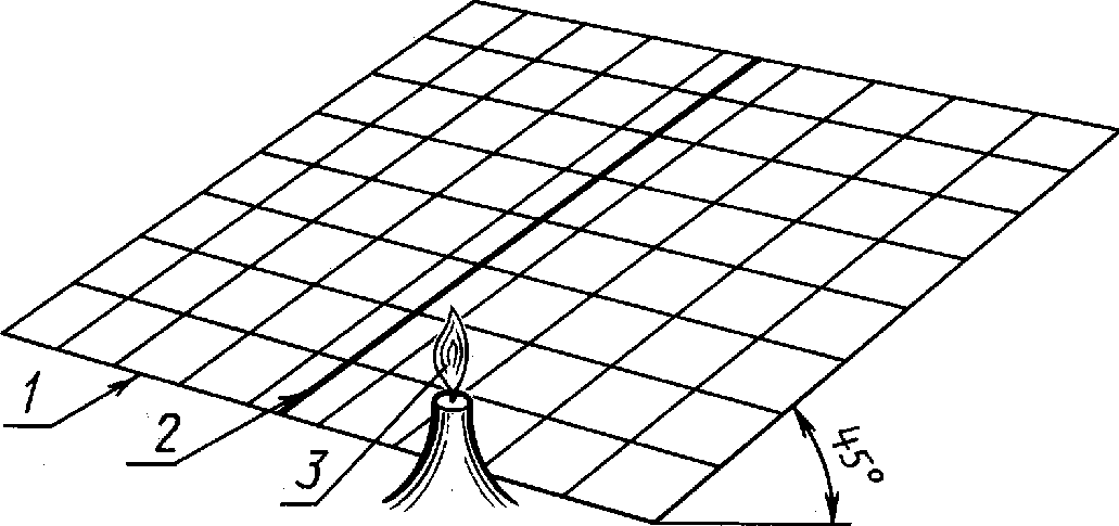 В процессе воздействия пламени смещение горелки недопустимо. По истечении установленного времени пламя горелки сразу же отводят от образца. Примеры расположения горелки при испытании представлены на черт. 2 и 3 ГОСТ 27484.