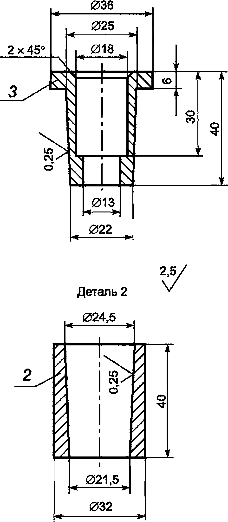 7 — колба из меди М 2; 2 — втулка из латуни ЛКС 80-3-3; 3 — пробка из латуни ЛКС-30-3-3