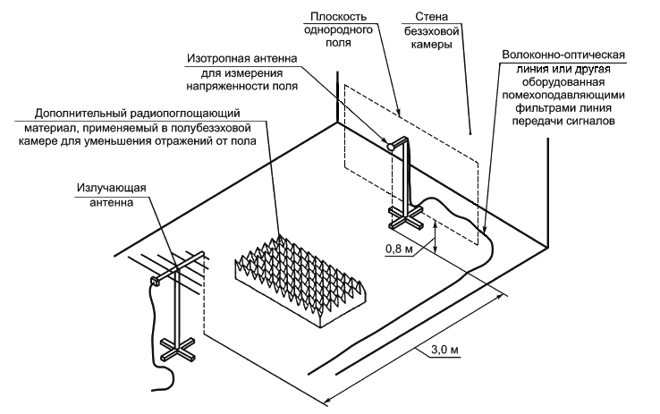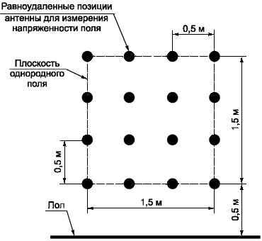 1 При испытательном расстоянии 3 м и использовании антенны с узкой диаграммой направленности, а также в камере с ферритовым покрытием на частотах свыше 1 ГГц трудно обеспечить требуемую однородность поля в плоскости однородного поля размерами более 1,51,5 м.