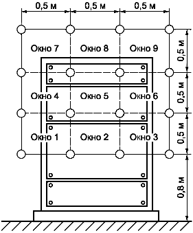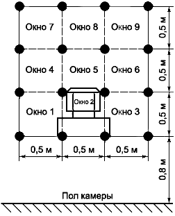 b) Напольное ТС (при калибровке поля и испытаниях используются окна 1-9)