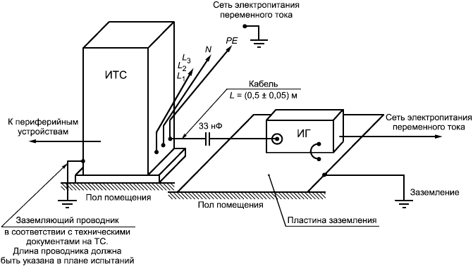 Рисунок 9 - Пример установки для испытаний ТС с подачей НИП на порты электропитания постоянного или переменного тока