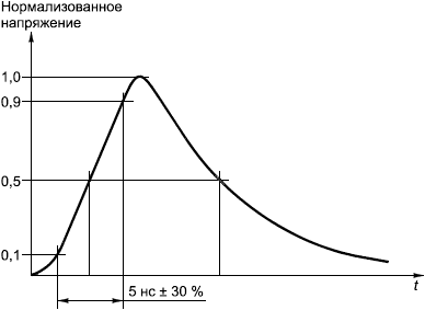 Более короткое время нарастания, например 1 нс, приводит к испытаниям меньшей жесткости, и целесообразность его применения в основном относится к оборудованию с короткими соединениями, применяемому поблизости от источника НИП.