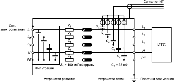 Примечание - При подаче НИП на порт заземления разделительный конденсатор емкостью 33 нФ применяют при необходимости.