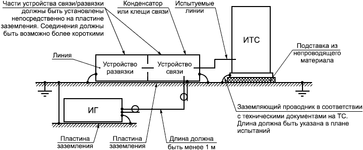 2 При проведении испытаний одного ТС между емкостными клещами связи и не испытуемым ТС необходимо установить устройство развязки.