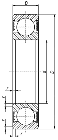Основное условное обозначение подшипника конструктивного исполнения | d | D | B |