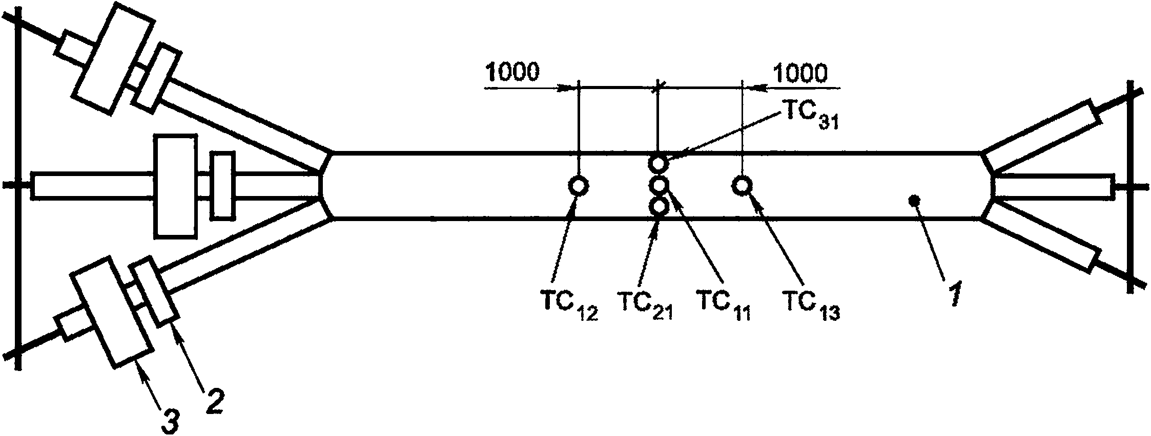 Рисунок Е.1 — Схема испытаний образцов с большим радиусом кривизны поверхности